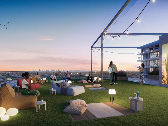 Largest podium longest pool – Barbecue area, Multipurpose sports court – Sky Terraces with Burj khalifa and burj al arab