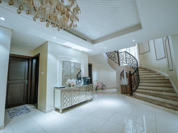 Facilities include a golf course and clubhouse, swimming pools, gyms/saunas, private parking, schools, clinics, shopping center & mosque—right within the community.