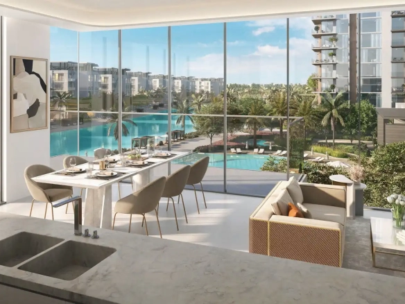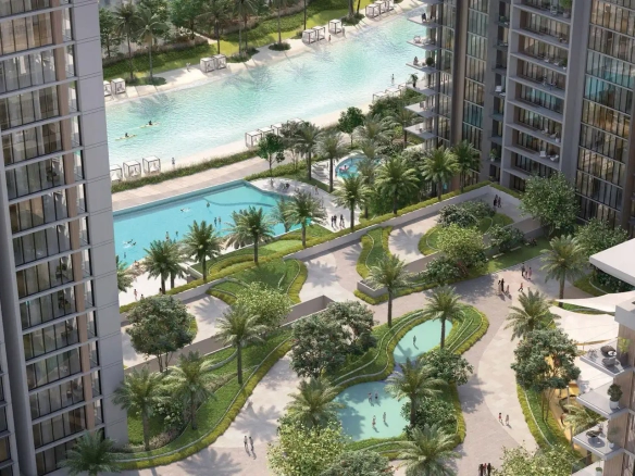 Luxurious collection of 1, 2, 3, and 4-bedroom apartments and villas with enchanting lagoon views. Three opulent residential towers interconnected with leisure areas, lagoons, and water attractions., Spacious terraces in each tower for absorbing the tranquil surroundings., Tower 1 features a rooftop lounge with a terrace, ideal for relaxation and social gatherings., Shallow pool cabanas and lounge seating for leisurely days by the pool., Flexible payment plans for accessible and hassle-free ownership., Over 8.4 kilometers of beautifully landscaped cycling and running tracks for an active lifestyle., Abundant green spaces and lush green corridors, with over 60% of the area dedicated to nature., Ashared green roof, beautifully landscaped, accessible to residents for outdoor relaxation.