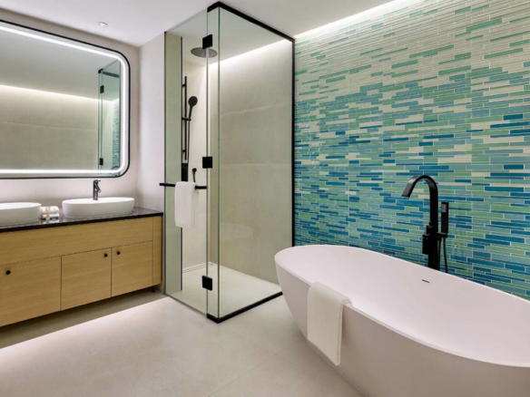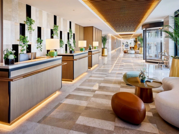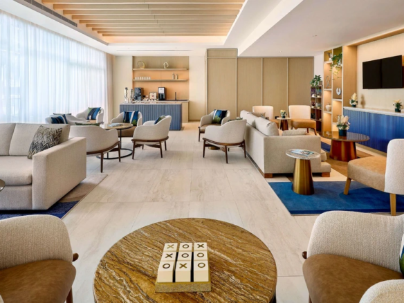 Natural materials like wood, stone, and leather add a sense of richness, while the overall design takes cues from nearby golf courses and equestrian clubs.