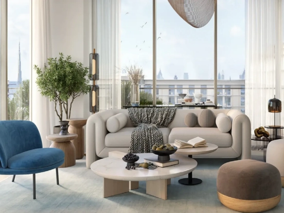 - Residents indulge in panoramic views of lush greenery, shimmering waters, the iconic Burj Khalifa, and the Arabian Sea.